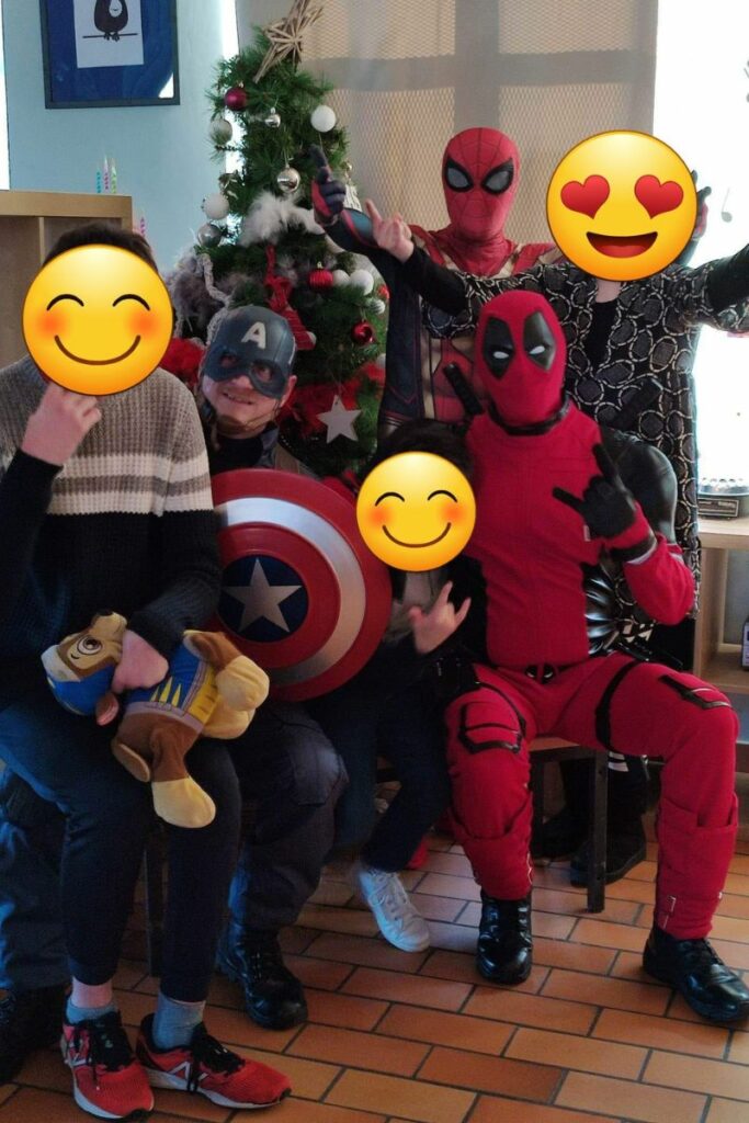 C’est à l’Espéranderie à Péruwelz que nous avons offert aujourd’hui, des jouets, des chocolats et des prestations aux enfants de l’institut médico pédagogique pour handicapés. Merci à Spiderman, Captain America, Deadpool, Elsa, Blanche neige, Ariel, La Belle et la Bête, Mickey et Minnie ainsi qu’aux 3 personnes qui ont tenu les ateliers : grimage, sculpture de ballons et tatouage éphémère. Mais nous tenions surtout à remercier toutes les personnes qui ont crû en nous depuis l’ouverture de l’association, en nous choisissant pour vos prestations. Sans vous, tout ça n’aurait pu être possible aujourd’hui. Un grand merci aux bénévoles d’avoir une fois de plus émerveillé les loulous. Et pour finir nous remercions le personnel de L’Espéranderie pour leur gentillesse.